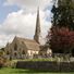 The stone church features a prominent spire, south aisle, sanctuary, and nave, standing at the base of Leckhampton Hill in Cheltenham.