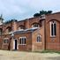 The church features red stock brick walls with Monks Park stone dressings, a slated roof, and a bell-turret on the western gable point.