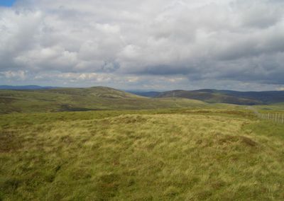 Stac Rhos rises to 630 meters within the Berwyn range, featuring a small cairn at its peak and offering views across the Welsh countryside.