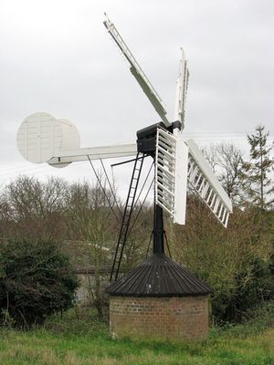 The windpump represents the agricultural engineering practices of Norfolk, demonstrating historical water management methods in East Anglia's farming landscape.