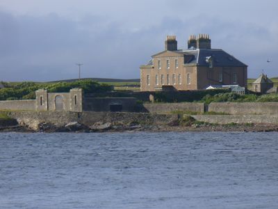 The eighteenth-century Gardie House sits across the Bressay Sound from Lerwick, featuring symmetrical walled gardens that lead down to a harbor point.