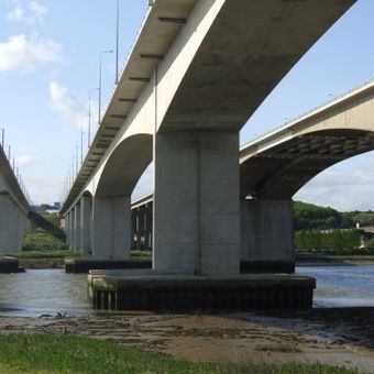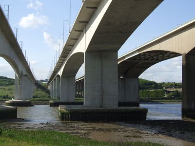 The Medway Viaducts consist of three parallel bridges spanning the River Medway, with two structures carrying the M2 motorway and one supporting the railway line.