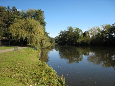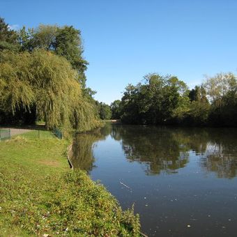 The 130-acre park stretches in a U-shape formation with mature woodland, ornamental gardens, a lake, tennis courts, and extensive walking trails.