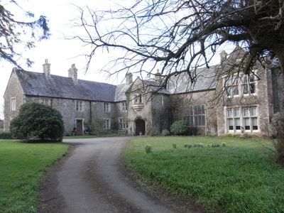 The two-story manor house displays slate stone construction, featuring a medieval great hall with a late 15th-century hammer-beam roof spanning 30 feet by 20 feet.