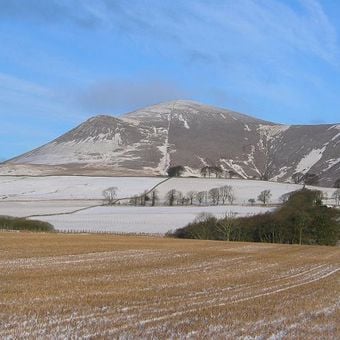 The 711-meter-high Tinto mountain stands out in the Southern Uplands landscape with its distinct shape visible from the surrounding valleys and hills.