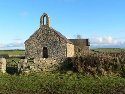 The church stands on an elevated mound approximately 4.25 kilometers northeast of Aberffraw and receives monthly services during specific periods of the year.