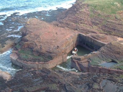 The estate contains a harbor carved directly into rock in 1890, measuring only three meters across, making it among Scotland's smallest ports.