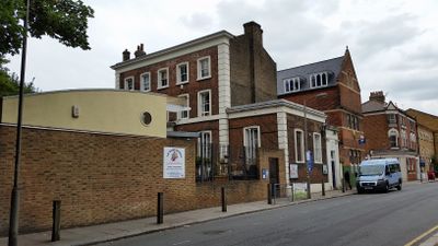 The Katherine Low Settlement operates from an early 18th-century symmetrical house with distinctive brickwork and stone dressings at 108 Battersea High Street.