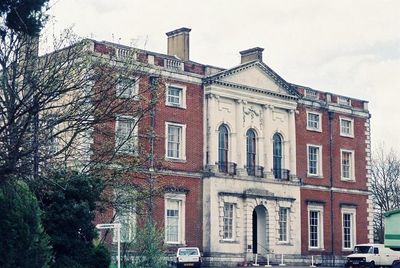 The mansion features two main floors with symmetrical windows, constructed of Portland stone with a central entrance and balanced proportions throughout its structure.