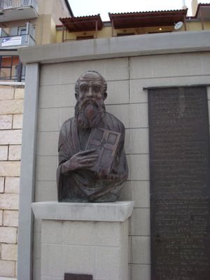 Bust of Evgenios of Aitolia, Karpenisi, sculpted memorial in Greece