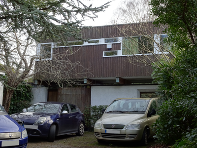 Cedarwood is a Grade II* listed residence in Woolton, Liverpool, featuring bold modern architecture designed between 1959 and 1960. The structure combines white cement render walls on the lower level with Canadian Western Redcedar cladding on the cantilevered upper section, creating a distinctive visual separation between floors.