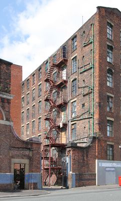 Located near the intersection of Pollard Street and the Ashton Canal, the Grade II* listed building maintains its original architectural elements.
