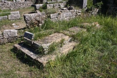Grave of Glafkos, Denkmal oder Grabmal auf dem Marktplatz (Agora) der antiken griechischen Stadt Thasos