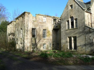 The interior contains remnants of a cantilevered stairway and ceiling elements, with discoveries of ornate mouldings in what was once the drawing room.