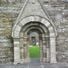 The church features a granite and limestone structure with detailed zoomorphic carvings and Scandinavian-influenced knotwork decorating its Romanesque archway.