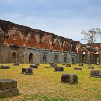 Pandua is an archaeological site in the Malda district of West Bengal. The site spreads across a flat plain, where walls, arches and low brick and stone foundations appear between fields and scattered trees.