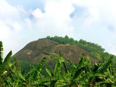 The rock formation rises approximately 150 meters above ground level, offering views across both Nedumangad town and Trivandrum city.