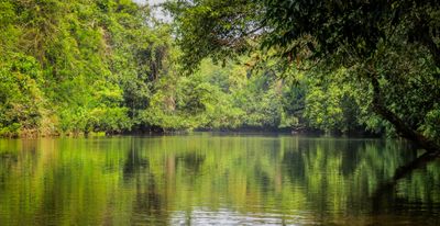 Tree houses positioned along the riverbank allow overnight guests to observe nocturnal forest activities and listen to natural sounds.
