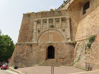 The fortress incorporates an ancient Etruscan gate called Porta Marzia from the 3rd century BC into its walls. This old gate was carefully disassembled and reassembled as part of the Renaissance structure.