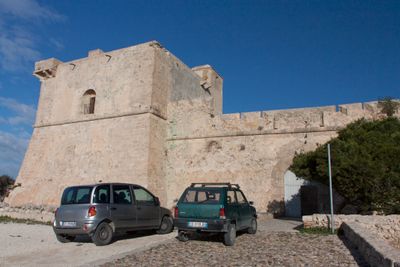 The triangular fortress stands 130 meters above sea level on Monte Sant'Angelo, providing views over the harbor and Mediterranean Sea.
