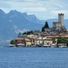Castello Scaligero sits on a limestone cliff above Lake Garda and features a tower rising over 30 meters high alongside multiple courtyards linked by drawbridges. The structure displays typical medieval defense features and houses a natural history museum inside.