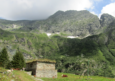 Ancient Roman pathways near Fondo lead to Monte Marzo, indicating centuries of human presence and travel through these Alpine passages between Piedmont and Aosta Valley.