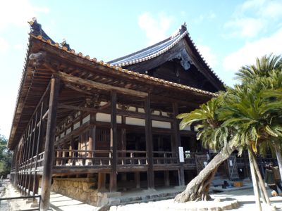 Located near Itsukushima Shrine, Senjokaku remains partially unfinished with exposed wooden beams and missing ceiling panels, allowing natural light to filter through.