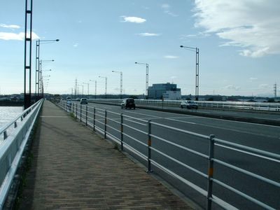 The bridge serves as a primary transportation route for vehicles and pedestrians, linking residential areas with commercial districts in Ube.