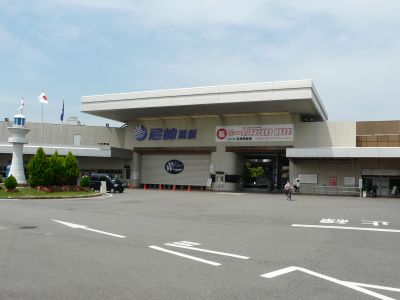 Boat Race Amagasaki is a racing venue with a specially designed water circuit where professional pilots compete in high-speed motorboats against each other. The facility features multiple racing lanes and spectator areas positioned to provide clear views of the action throughout the course.