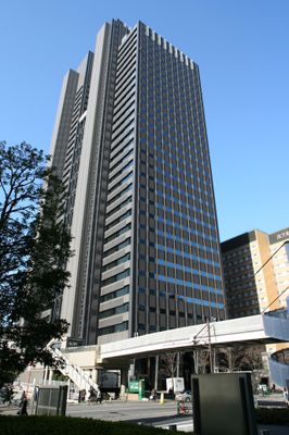 The building represents modern Japanese corporate architecture with its extensive public spaces, covering 70 percent of the ground area for community use.