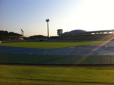 The stadium features modern athletic facilities and natural grass fields within the expansive grounds of Ijimino Park, accommodating up to 8,800 spectators for various events.