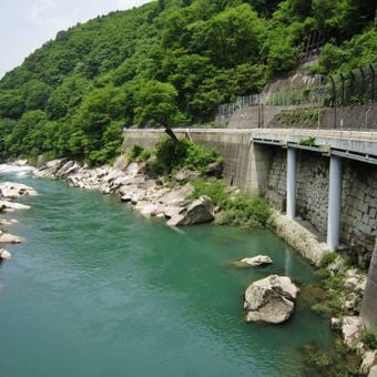 The Kiso no Kakehashi is a bridge spanning a steep rocky cliff high above the Kisogawa River, creating a narrow passage through a dramatic gorge. The current structure blends modern construction with visible remains of older stonework, allowing visitors to walk safely along an elevated path over the water.