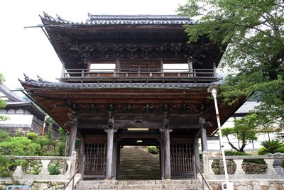 Keirinji Temple features three ornate gates, with the first two visible from the road and the third positioned at a higher elevation with Chinese architectural elements.