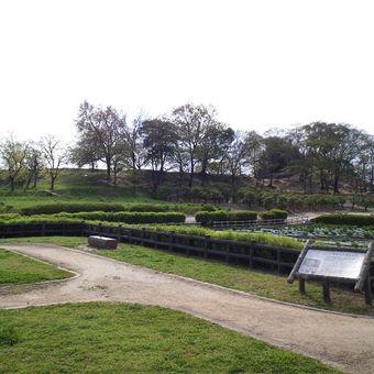 The Tsudō-Shiroyama Kofun is a large burial mound with a distinctive keyhole shape surrounded by double moats. The structure spans a substantial area and demonstrates the elaborate construction methods typical of imperial tomb mounds from this era.