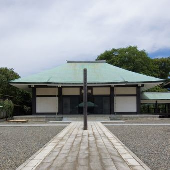 Mangan-ji is a Buddhist temple in Todoroki with traditional Japanese architecture and copper-roofed buildings arranged along straight white stone paths. The architect Yoshida Isoya designed these pathways in 1970 to shape the temple grounds.