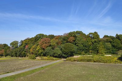 The Nobono Otsuka Kofun features a distinctive keyhole shape, combining a square front section with a circular rear portion measuring several meters in height.