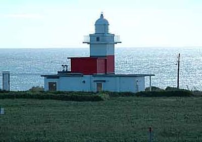 Ochiishi Misaki Lighthouse, White and red lighthouse on Cape Ochiishi, Hokkaido, Japan.