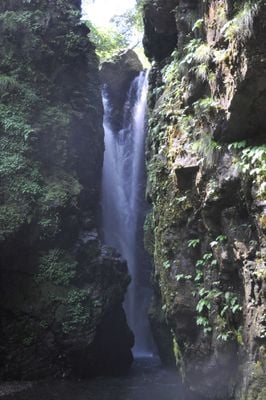 The name comes from the thunderous roar of cascading water echoing through the ravine. In November, locals carry portable shrines to the waterfall basin as part of ceremonies held nearby.