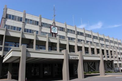 The Koriyama City Hall building features modern architectural elements with glass facades and serves the governmental needs of over 320,000 residents.