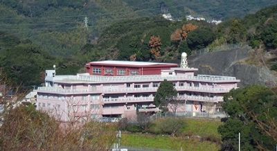 The school campus contains modern facilities including specialized classrooms, libraries, and recreational spaces at coordinates 32.784583 latitude and 129.882444 longitude.
