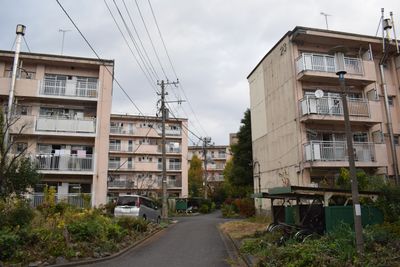 The buildings show the danchi housing approach, which brought modern community living to urban Japanese neighborhoods. Visitors can still see today how residents live close together and share common spaces.