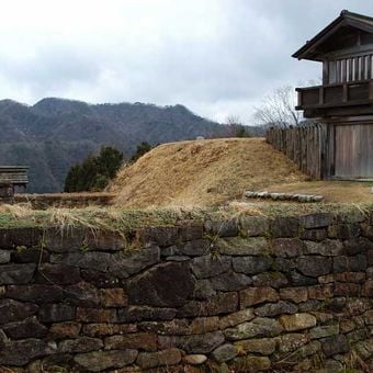 Torigoe Castle is a mountain fortress in Hakusan with stone wall remains and a reconstructed gate located at an elevated position. From this vantage point, you can see across several valleys in Ishikawa Prefecture.