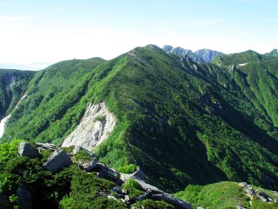 Mount Hinokio reaches an elevation of 2,727 meters within the Japanese Alps, offering views across the surrounding peaks and valleys of Komagane region.
