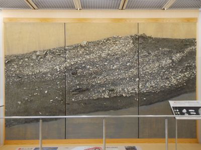 The Higashimyo site contains six shell mounds spread across 1700 square meters, featuring residential areas, burial grounds, and storage pits from the Jomon period.
