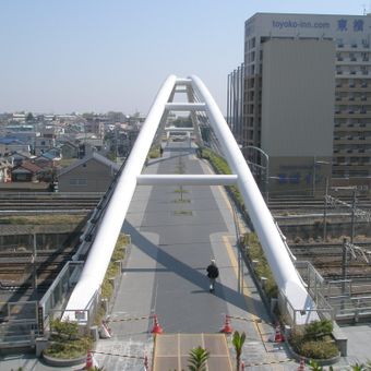 The construction of this bridge was part of the transformation project that converted former railway switchyards into the Saitama New Urban Center in 2000.