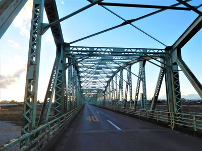 鬼怒橋, Steel bridge over Kinugawa River in Utsunomiya, Japan.
