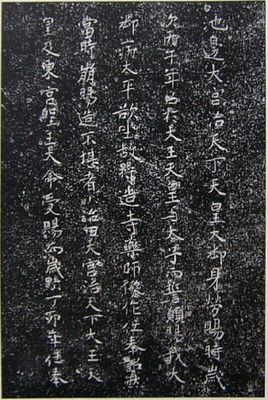 The engraved text exhibits a slender regular script style where characters like 'ten' and 'dai' lean toward the left side of the composition.