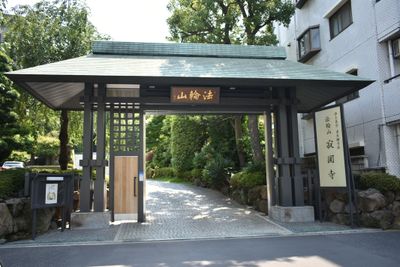 Jakuen-ji displays traditional Japanese temple architecture with wooden structures, curved rooflines, and a main hall for Buddhist ceremonies and meditation.