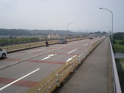 Mutsumi Bridge, Road bridge over Tama River in Fussa and Akiruno, Japan.