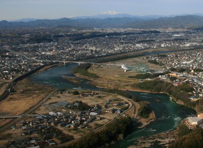 The Chunō Bridge extends 380 meters across the Kiso River, featuring four traffic lanes and pedestrian walkways with a width of 20.5 meters.